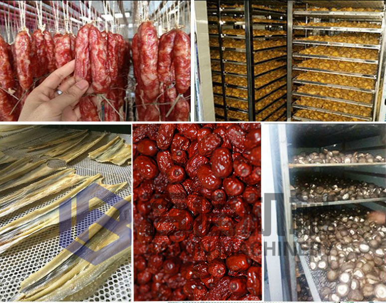 食品烘干: 臘腸、臘肉、臘魚、香腸、河粉、米粉、紅薯粉、面條、掛面、腐竹等。